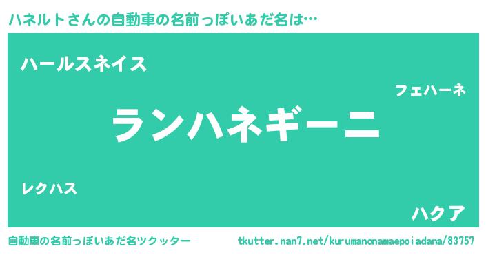 | 意味不明あだ名 | 『めかぶ科ハネルト属』『自称ハネルト』 |
