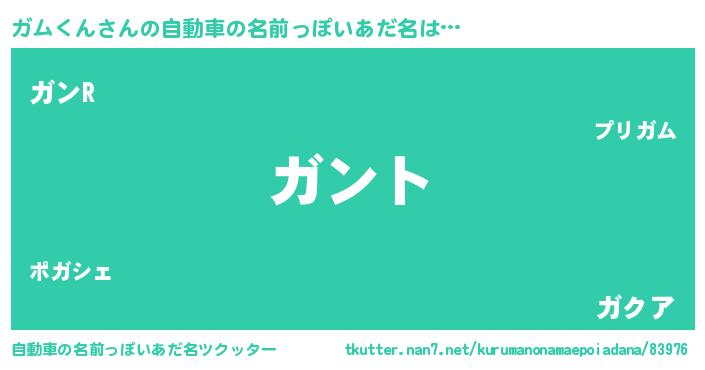 | 男性向けラノベタイトル風あだ名 | 『ガムくんの嫁は女の子じゃないと思った?』 |