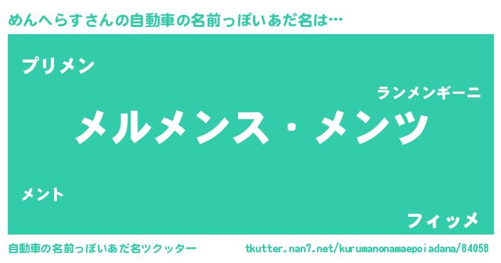 | 意味不明あだ名 | 『自称めんへらす』『ペロリンめんへらす』 |