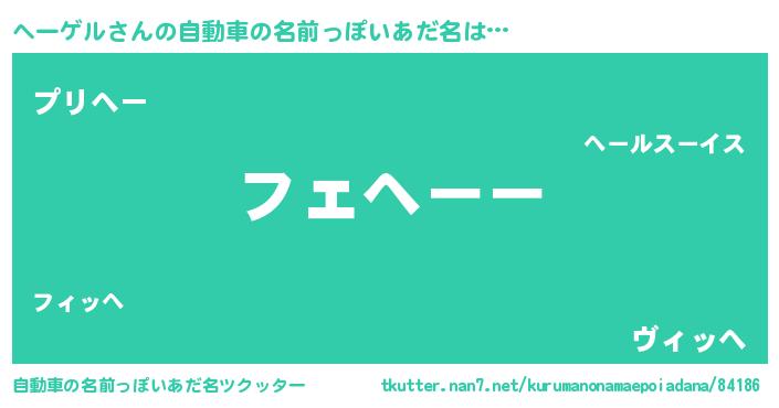 | ヒーロー風カッコイイあだ名 | 『スーパーヘーゲル』『ネオヘーゲル』 |