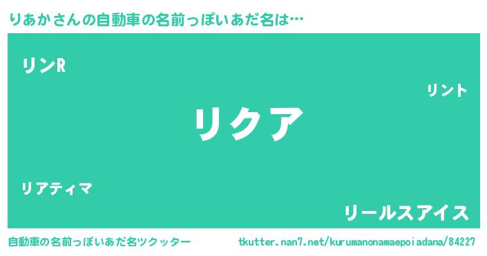 | 女子向けラノベタイトル風あだ名 | 『りあかの雑貨屋さん』『りあか恋絵巻』 |