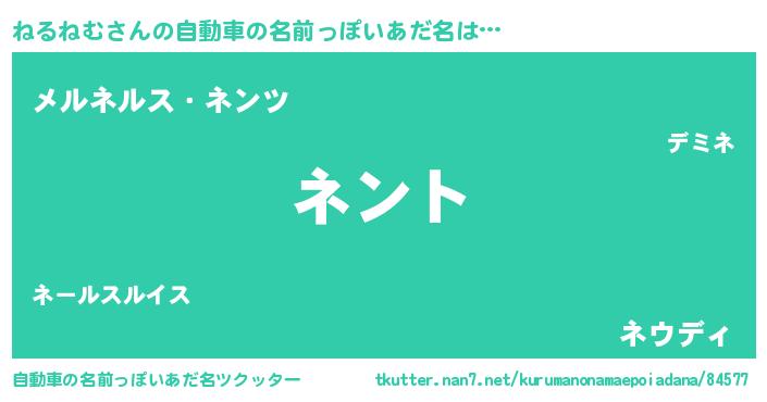 | 男性向けラノベタイトル風あだ名 | 『ねるねむの嫁は女の子じゃないと思った?』 |