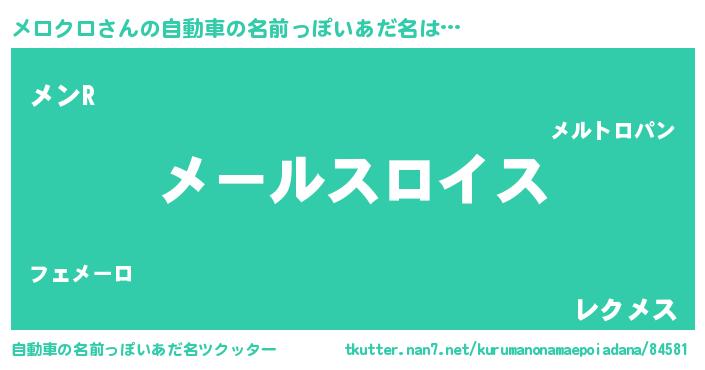 | 男性向けラノベタイトル風あだ名 | 『転生したらメロクロだった件』 |