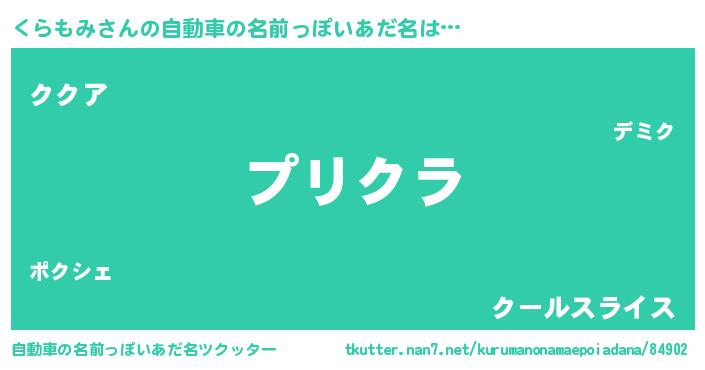 | 男性向けラノベタイトル風あだ名 | 『くらもみの憂鬱』『クラモミスレイヤー』 |