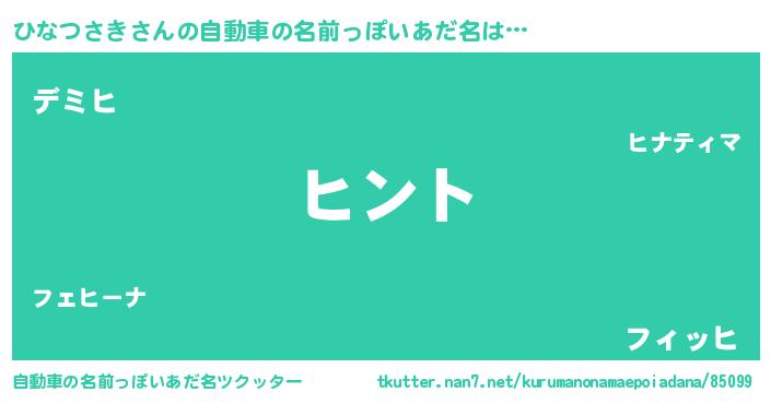 | ポケモン風あだ名 | 『ヒヒナツサキ』『ゼニヒナ』 |
