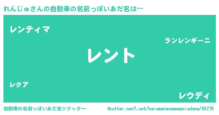 | 女子向けラノベタイトル風あだ名 | 『れんじゅの卵を拾いまして』 |