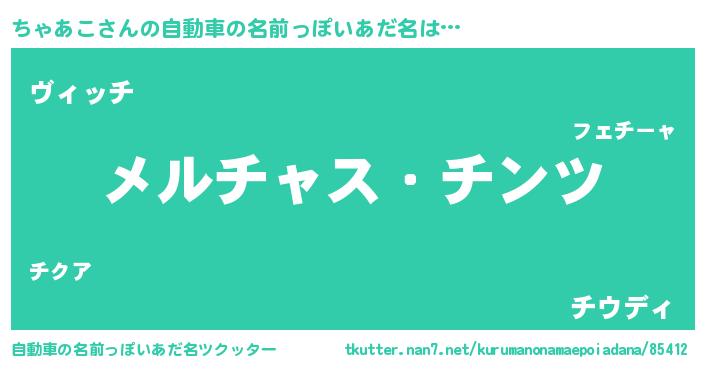 | 男性向けラノベタイトル風あだ名 | 『Re:ちゃあこから始める異世界生活』 |