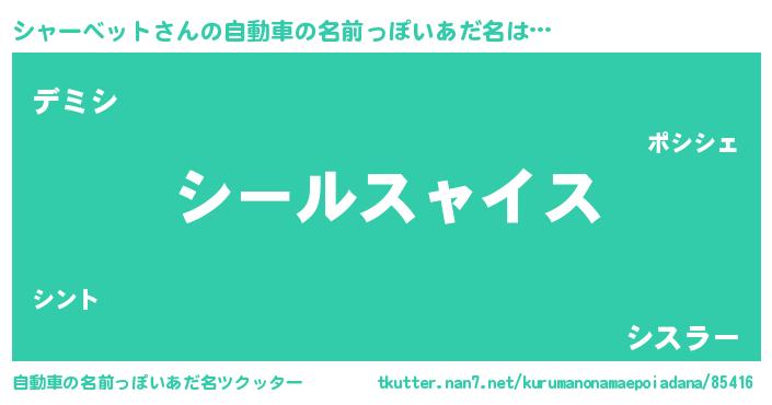 | 女子向けラノベタイトル風あだ名 | 『シャーベットの玉の輿計画!』 |