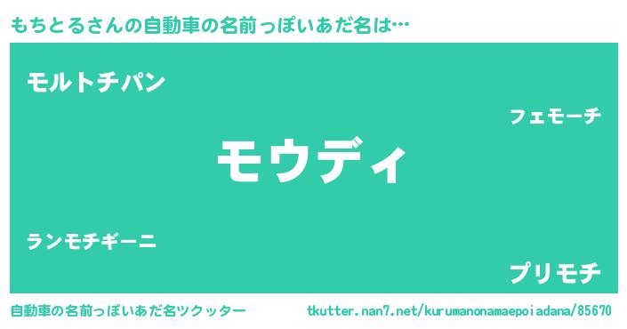 | 男性向けラノベタイトル風あだ名 | 『魔弾の王ともちとる』『もちとるの憂鬱』 |