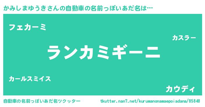 かみしまゆうきさんの自動車の名前っぽいあだ名をツクッター!