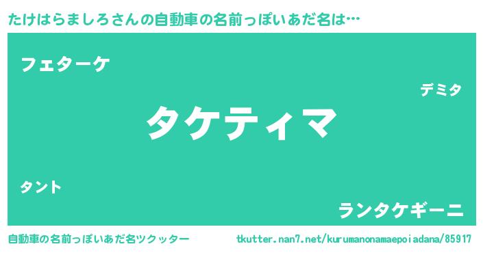 ヘコむあだ名 | 『たけもー』『たけはらましろ(震え声)』 |
