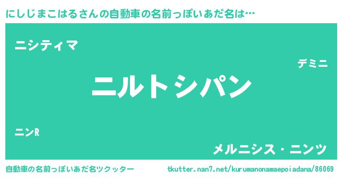 | 意味不明あだ名 | 『とにかく怪しいにしじまこはる』 |