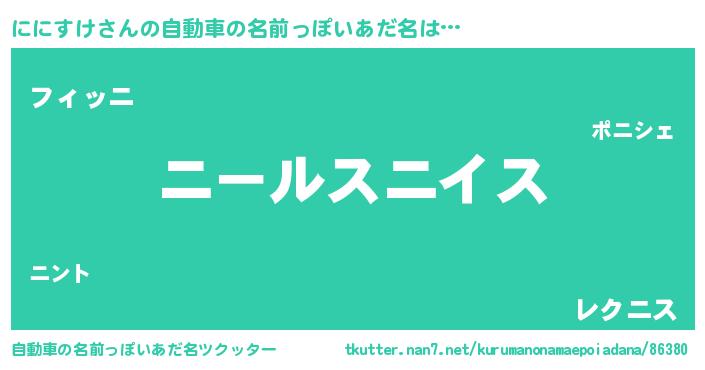 | 男性向けラノベタイトル風あだ名 | 『ににすけ~年齢イコール彼女いない歴の魔法使い~』 |