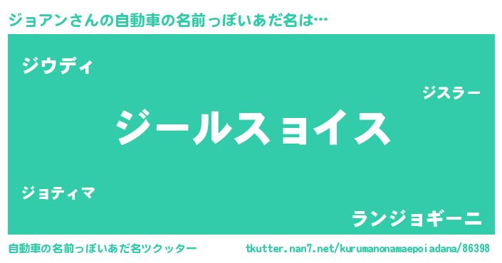 | 女子向けラノベタイトル風あだ名 | 『ジョアンの玉の輿計画!』 |