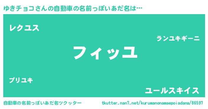 ゆきチョコさんの自動車の名前っぽいあだ名をツクッター!
