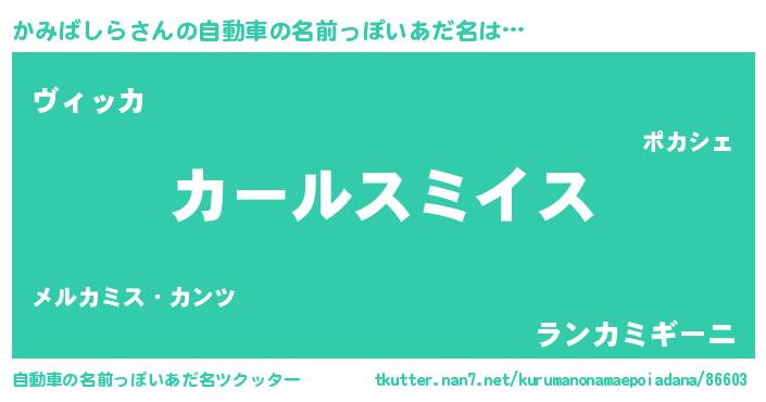 | 男性向けラノベタイトル風あだ名 | 『かみばしら~年齢イコール彼女いない歴の魔法使い~』 |