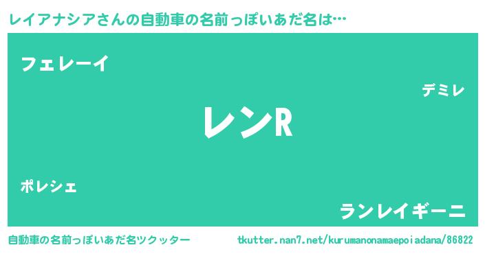 | ヘコむあだ名 | 『レイアナシア(爆)』『レイもー』 |