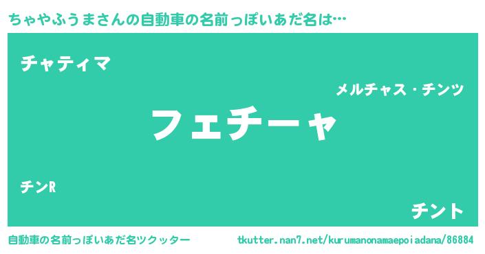 | 欧米人風あだ名 | 『ちゃやふうま・ステッグマイヤー』 |