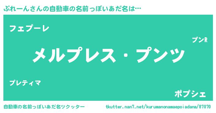 ぷれーんさんの自動車の名前っぽいあだ名をツクッター!