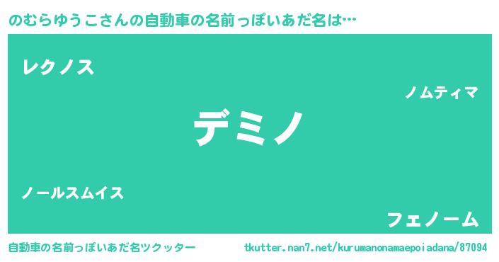 | 男性向けラノベタイトル風あだ名 | 『のむらゆうこという概念が存在しない退屈な世界 』 |