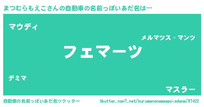 | ヒーロー風カッコイイあだ名 | 『仮面マツダー』『ネオマツムラモエコ』 |