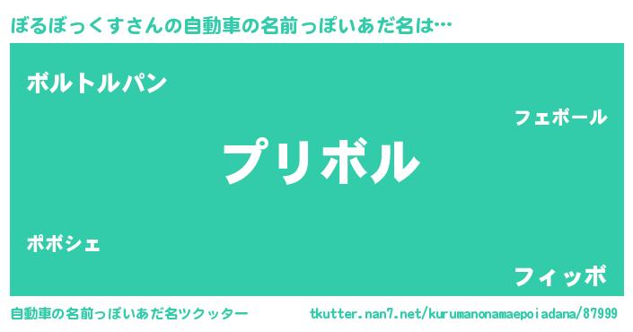 | 男性向けラノベタイトル風あだ名 | 『ぼるぼっくすの憂鬱』 |