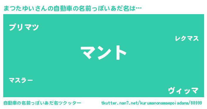 | 胡散臭い通販商品みたいなあだ名 | 『全米が絶賛したサプリメント…その名も「まつたゆい」』 |