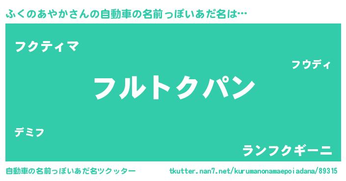 | 欧米人風あだ名 | 『ウサインふくのあやか』 |