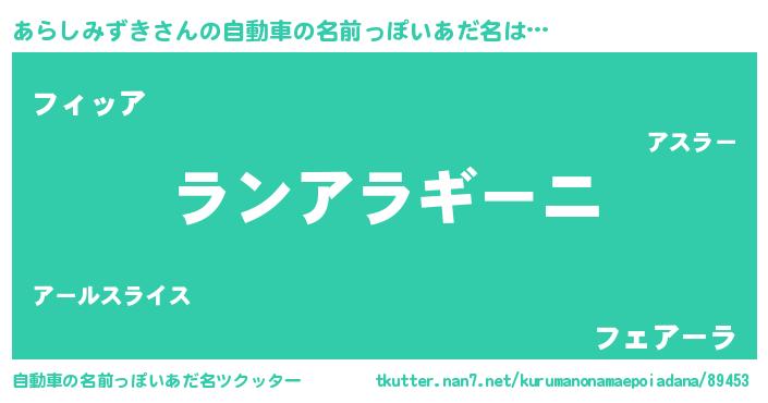 | 欧米人風あだ名 | 『アンジェラ・あらしみずき』 |