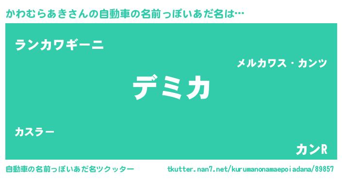 | 胡散臭い通販商品みたいなあだ名 | 『来世でも幸せになれる水素水…その名も「かわむらあき」』 |