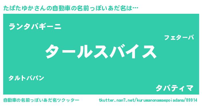 | 男性向けラノベタイトル風あだ名 | 『タバタユカスレイヤー』 |