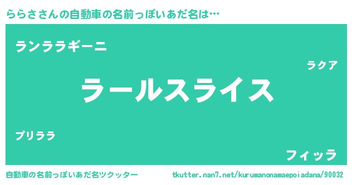 | 男性向けラノベタイトル風あだ名 | 『転生したらららさだった件』 |