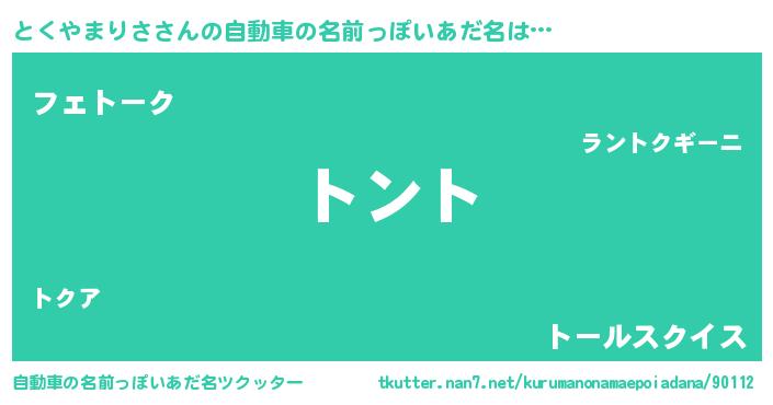 | 男性向けラノベタイトル風あだ名 | 『とくやまりさの嫁は女の子じゃないと思った?』 |