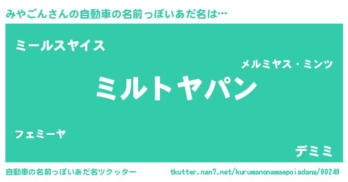 | 男性向けラノベタイトル風あだ名 | 『ダンジョンにみやごんを求めるのは間違っているだろうか』 |