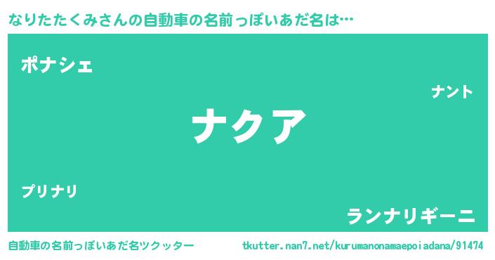 | ファンタジー風あだ名 | 『エターナルナリタタクミー』 |