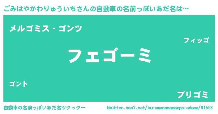 | ファンタジー風あだ名 | 『カークゴミラー』『ゼゴミトゥ』 |