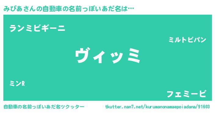 | 女子向けラノベタイトル風あだ名 | 『みびあの契約王妃』『死神みびあの再婚』 |