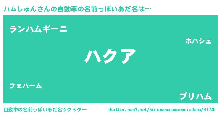 | 意味不明あだ名 | 『ハムしゅんフォーエバー』 |