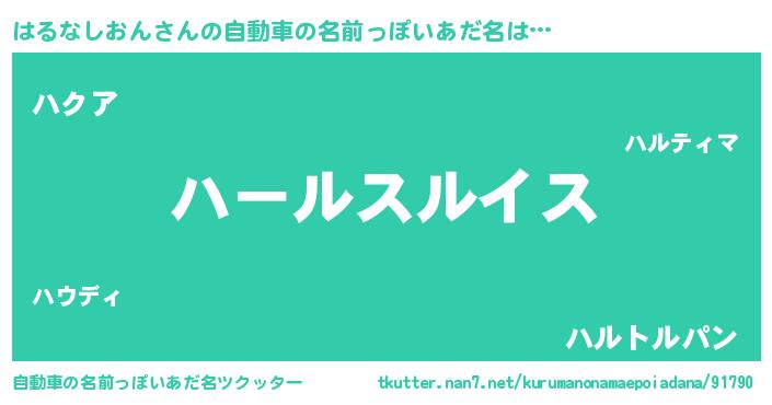 | 男性向けラノベタイトル風あだ名 | 『転生したらはるなしおんだった件』 |