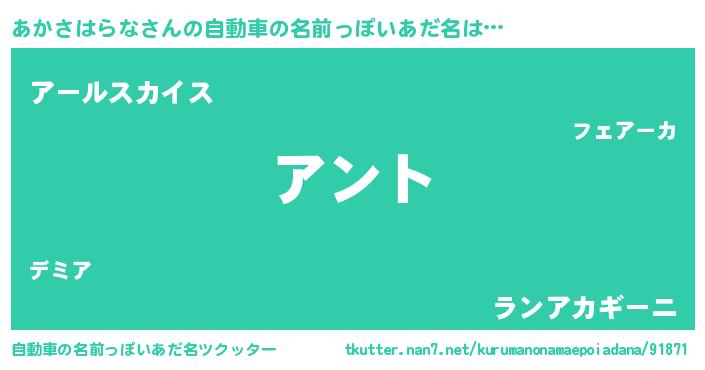 | 男性向けラノベタイトル風あだ名 | 『あかさはらなの嫁は女の子じゃないと思った?』 |