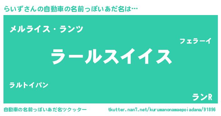 | 男性向けラノベタイトル風あだ名 | 『転生したららいずだった件』 |