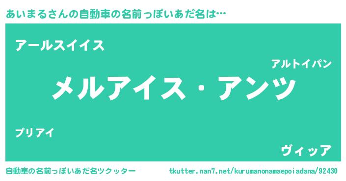 | ファンタジー風あだ名 | 『ゼアイトゥ』『ユリアイヴァット』 |