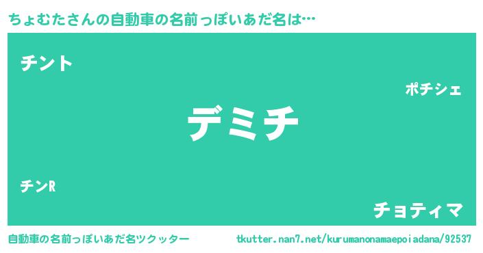 | 男性向けラノベタイトル風あだ名 | 『ちょむたという概念が存在しない退屈な世界 』 |
