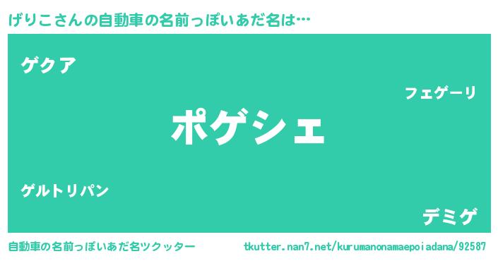 げりこさんの自動車の名前っぽいあだ名をツクッター!