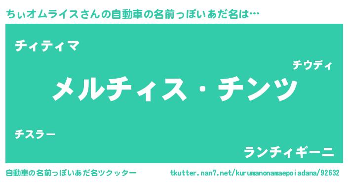 | 女子向けラノベタイトル風あだ名 | 『ちぃオムライスストレイドッグス』 |