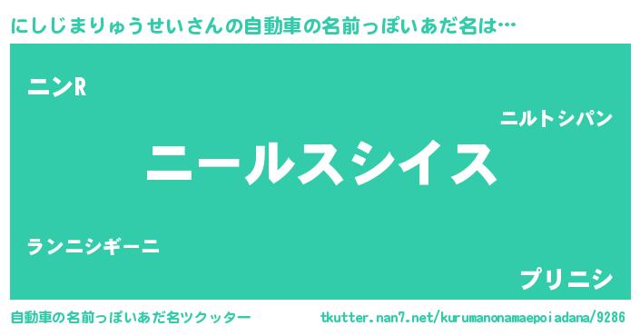 | 男性向けラノベタイトル風あだ名 | 『転生したらにしじまりゅうせいだった件』 |
