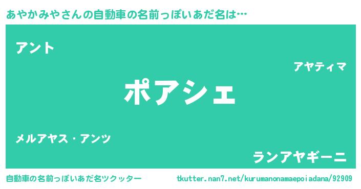 あやかみやさんの自動車の名前っぽいあだ名をツクッター!
