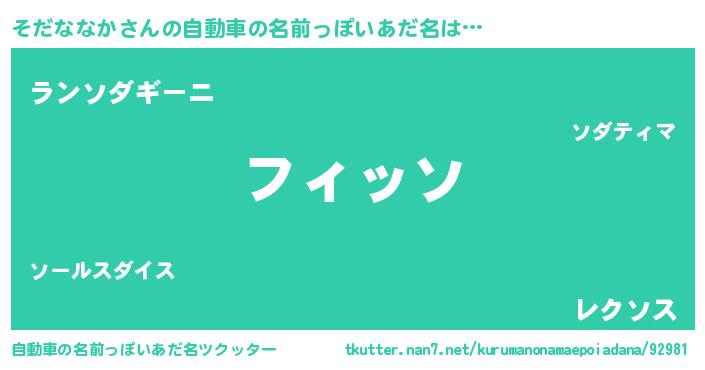 そだななかさんの自動車の名前っぽいあだ名をツクッター!