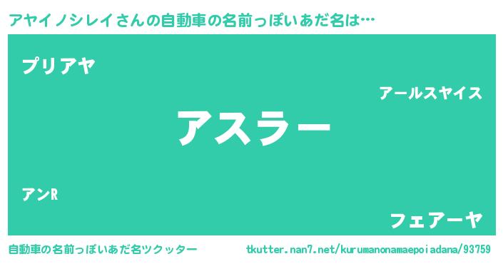 | 欧米人風あだ名 | 『アヤイノシレイクリステル』 |
