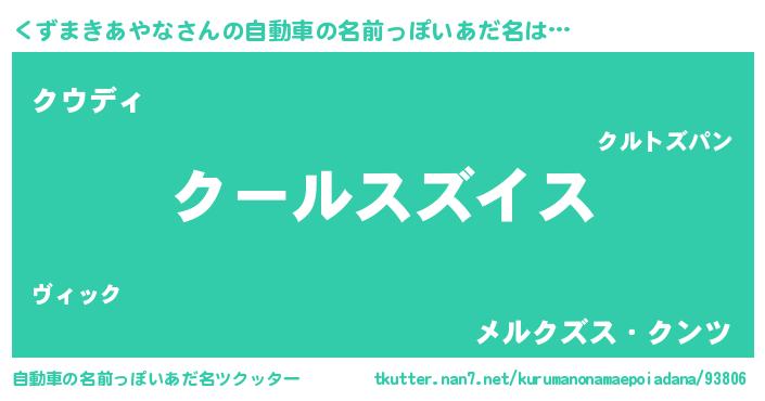| 女子向けラノベタイトル風あだ名 | 『くずまきあやなの玉の輿計画!』 |